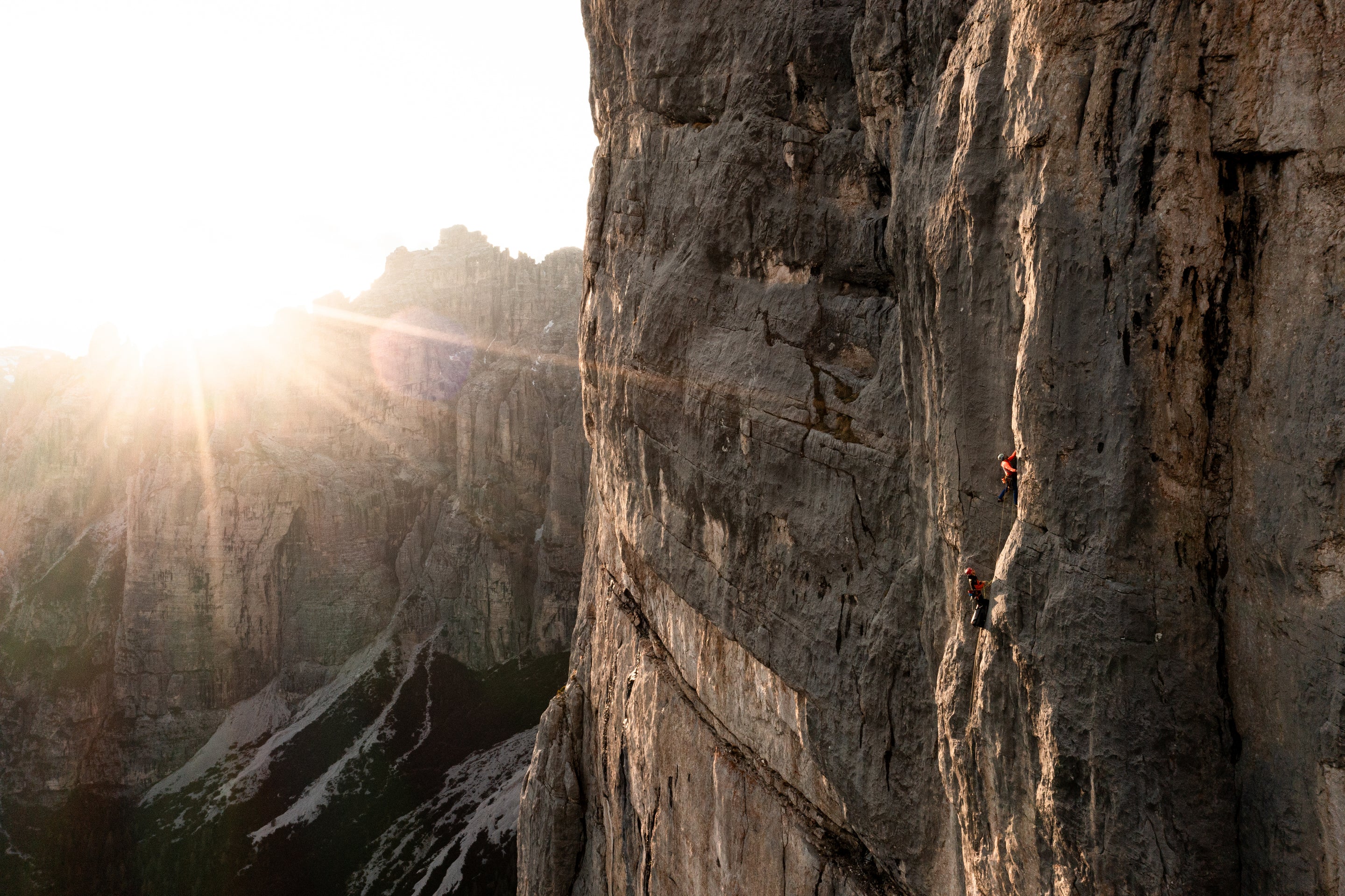 ENIGMA is an adventure among friends, born from an idea of Nicola Tondini, which remained suspended between dream and desire for years and years. The idea of attempting a new route is shared with Alessandro Baù and Alessandro Beber, fellow climbers. For the dream to be said to be realized, one element is missing: the first free ascent. The perfect window arrives on June 24 and 25, 2023, the three of them return to the wall and free the route "One Push," alternating on the 28 pitches of that decades-old rebus finally solved.