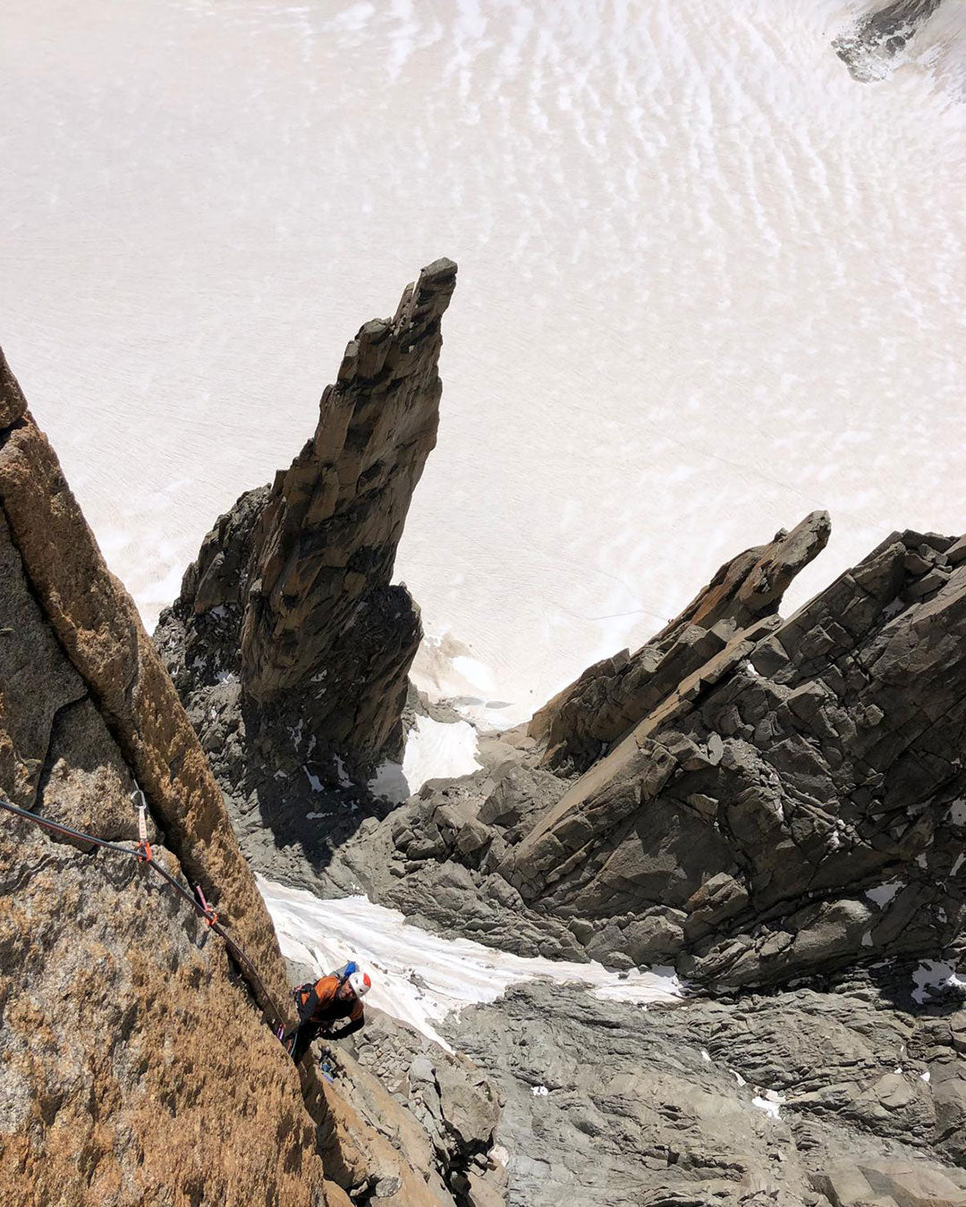 An imagined ascent, a real achievementThe ascent of the Grand Capucin does not appear in my official record, yet every time I see myself on that summit, I relive another story of commitment and perseverance. The climb does not begin at the base of the wall, where the silence of the glacier is broken only by the wind and the sound of ice cracking beneath crampons and crutches. It begins four days earlier, after climbing several routes independently with my partner, Guillermo Forte, on the face of the Aiguille de Blaitière. We decide to move camp and aim for the most coveted objective: the Grand Capucin.We arrive at Punta Helbronner, prepare our gear, rope up, and load our packs with only the essentials. Ahead lies the thin track across the glacier, more than two and a half kilometers where every step demands balance and experience. The loss of a leg is not an obstacle, but a condition that has pushed me to refine my technique, discover new balances, and strengthen my trust in my own abilities.