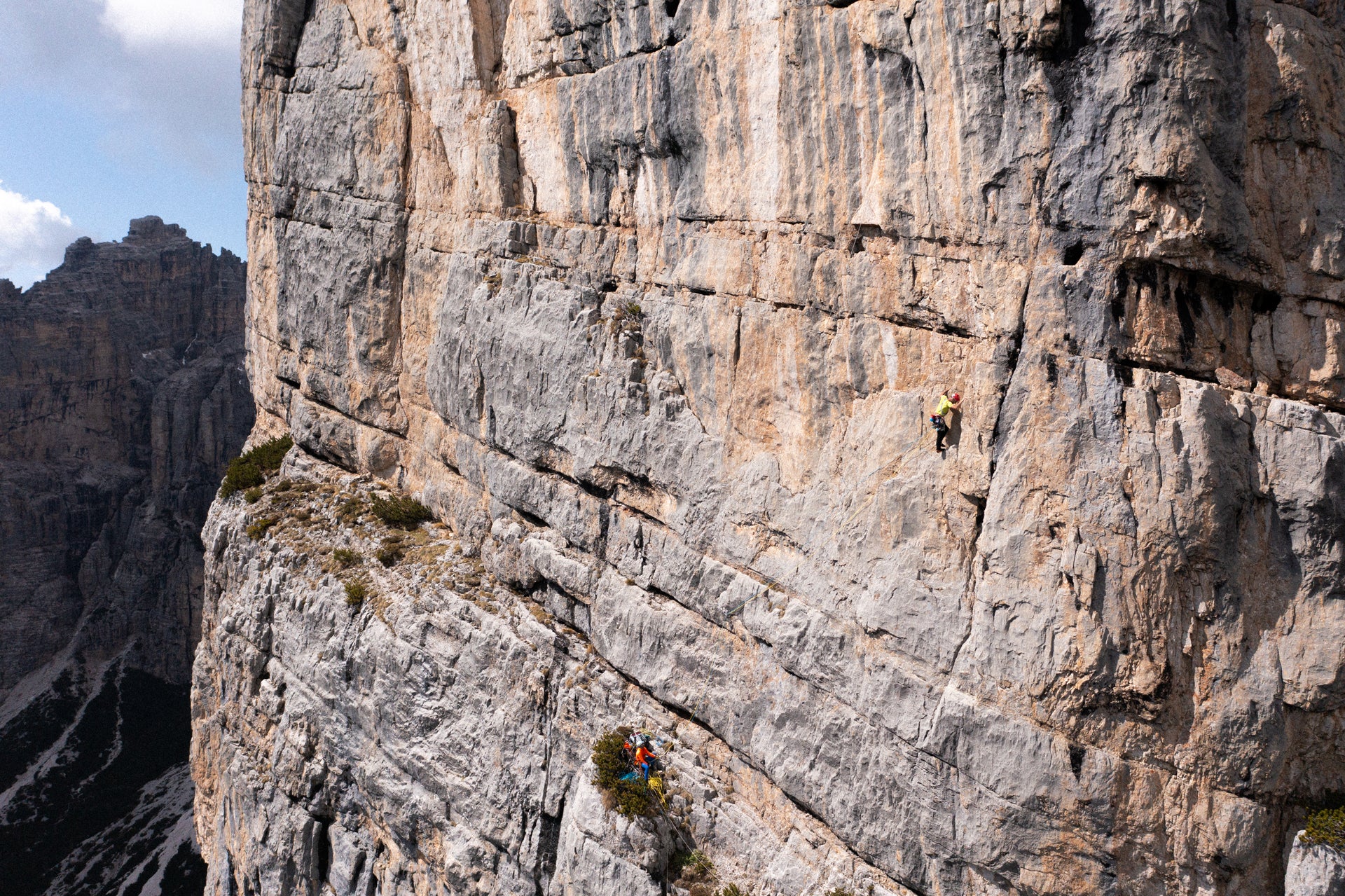 In 2012, having climbed Colonne d’Ercole on the north-west side of Mount Civetta, we blew on the still-hot embers and decided to attempt a new route on Torre Trieste. Easy to say, wonderful to dream of, but rather complicated to execute. We started thinking about it, digesting the idea, studying the wall and the existing routes to work out whether it might be feasible… which was absolutely not a given. In fact, we have an unhealthy tendency to self-impose limits that complicate things some what: not only did we want to open a route on the moststunning and famous tower in the Dolomites; we wanted it to be a route with its own logic, a route that doesn’t interfere with the classics and that respects the history of the wall; a traditional-style route that doesn’t require artificial means, and so on and so on…And as the years passed, there seemed to be more doubts than certainties, but in the autumn of 2022 something fell into place and we decided to give it a go. We spent a day on a recce and climbed a few pitches, just to get the feel of it, then started climbing seriously: in seven days between the end of September and the beginning of November, we solved our puzzle, devising a magnificent route that exceeded our rosiest expectations.